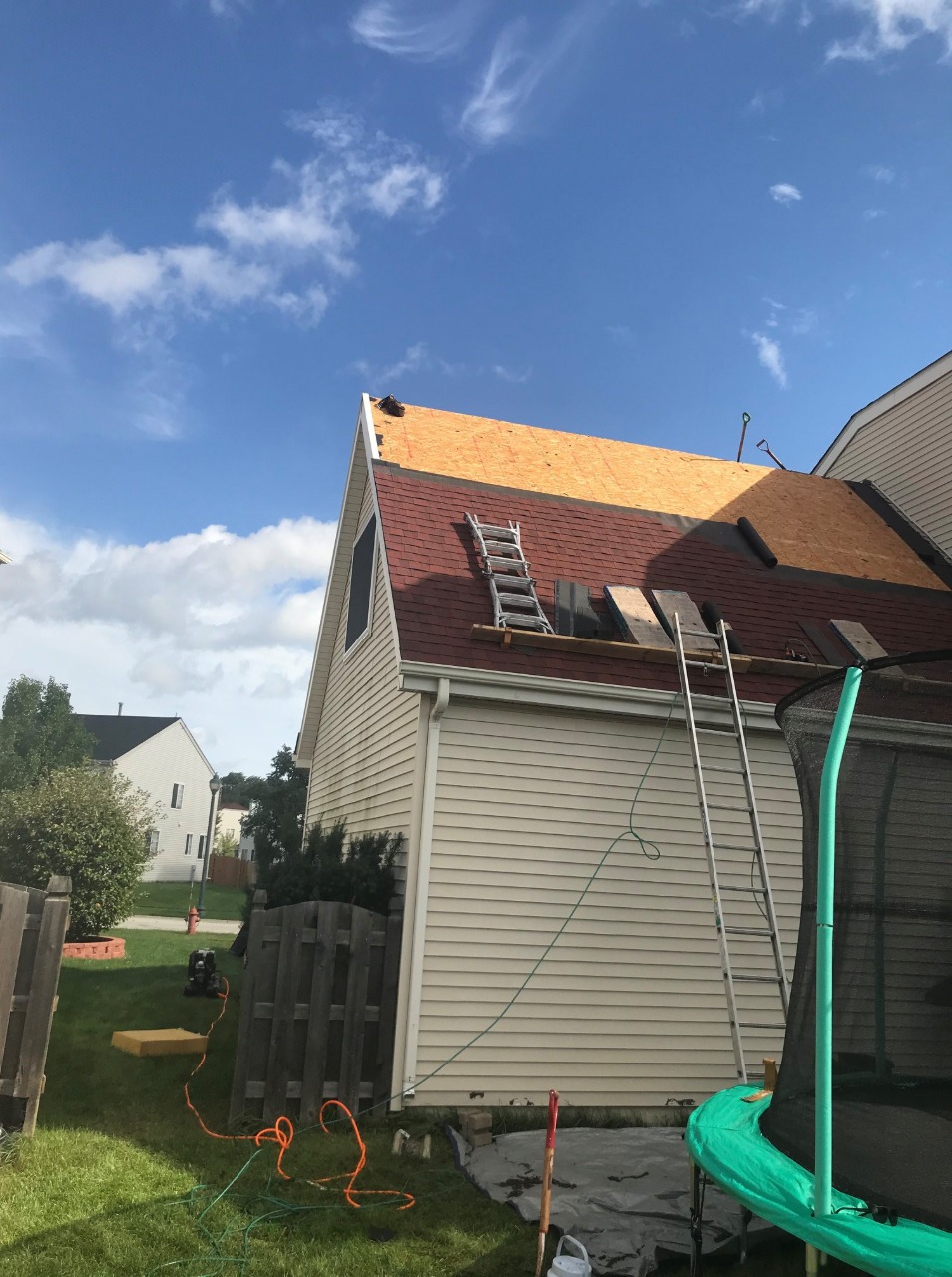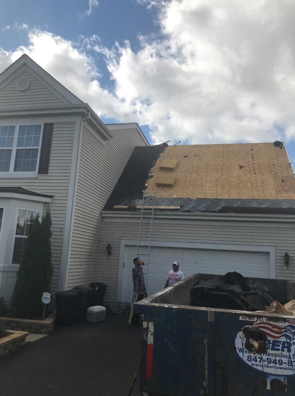 The homeowner in Buffalo Grove, Illinois experienced storm-related roof damage that led to shingle failure and exposed roof decking, putting the home at risk of water intrusion.